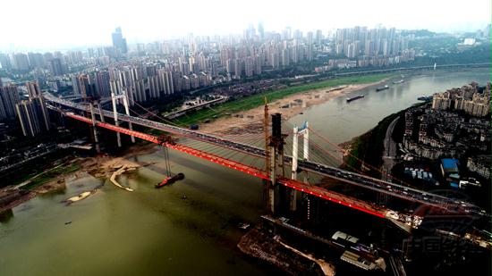 5月5日凌晨5時58分,隨著重慶市鵝公巖軌道交通專用橋最后一段鋼箱梁安裝完成,標志著世界最大跨度的自錨式懸索橋順利合龍。 軌道交通環(huán)線是重慶市唯一的閉合環(huán)形線路,全長50.8公里,軌道交通環(huán)線是連接九龍坡、沙坪壩、渝北、江北、南岸等五個行政區(qū)的快速軌道交通干線,是集連接鐵路、公路、水運、空運多位一體的軌道交通線路。由中國鐵建投資集團投資建設(shè)的重慶軌道交通環(huán)線二期工程18.75公里,鵝公巖軌道專用橋是全線重點工程。